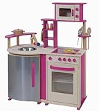 Howa - Dînette bois ultra moderne et détailléePetite cuisine moderne en bois, en partie peinte en couleurs vives, comprend de nombreux détails fonctionnels et bien étudiés - plaque de cuisson ceran, four à micro-ondes, évier, frigo, four, porte ustensils de cuisine et un petit bar. Les boutons font un petit « clic ». Ce sera un plaisir de jouer à faire la cuisine ! Livraison avec la manique, sans la décoration. La hauteur du plan de travail est de 55 cm.