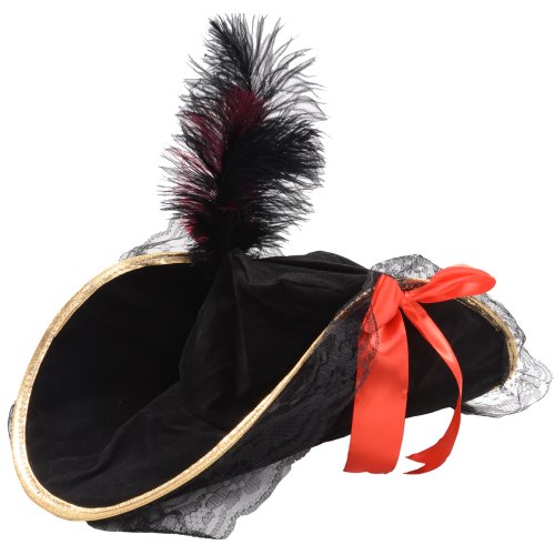 Deguisement Chapeau de Pirates des caraibes pour femme noir avec bande doree et Plumes
